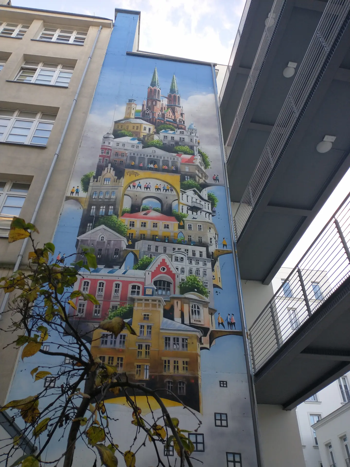 Mural powstał na potrzeby inwestycji deweloperskiej zlokalizowanej na warszawskiej Pradze-Południe. Projekt autorstwa Tytusa Brzozowskiego wprowadza do przestrzeni miejskiej charakterystyczną dla jego twórczości architektoniczną fantazję i koloryt miasta, tworząc unikalny akcent wizualny dla nowej zabudowy.
