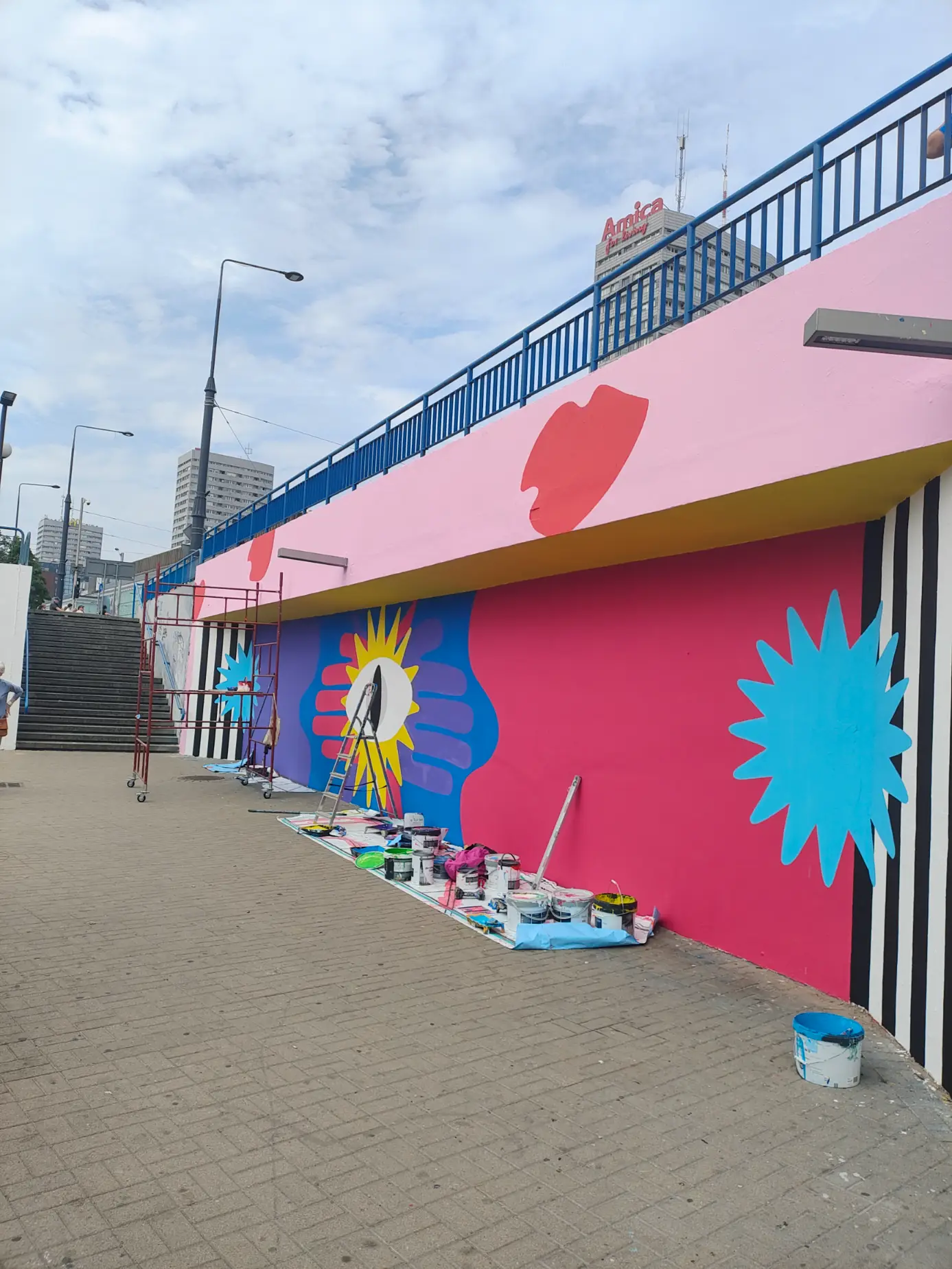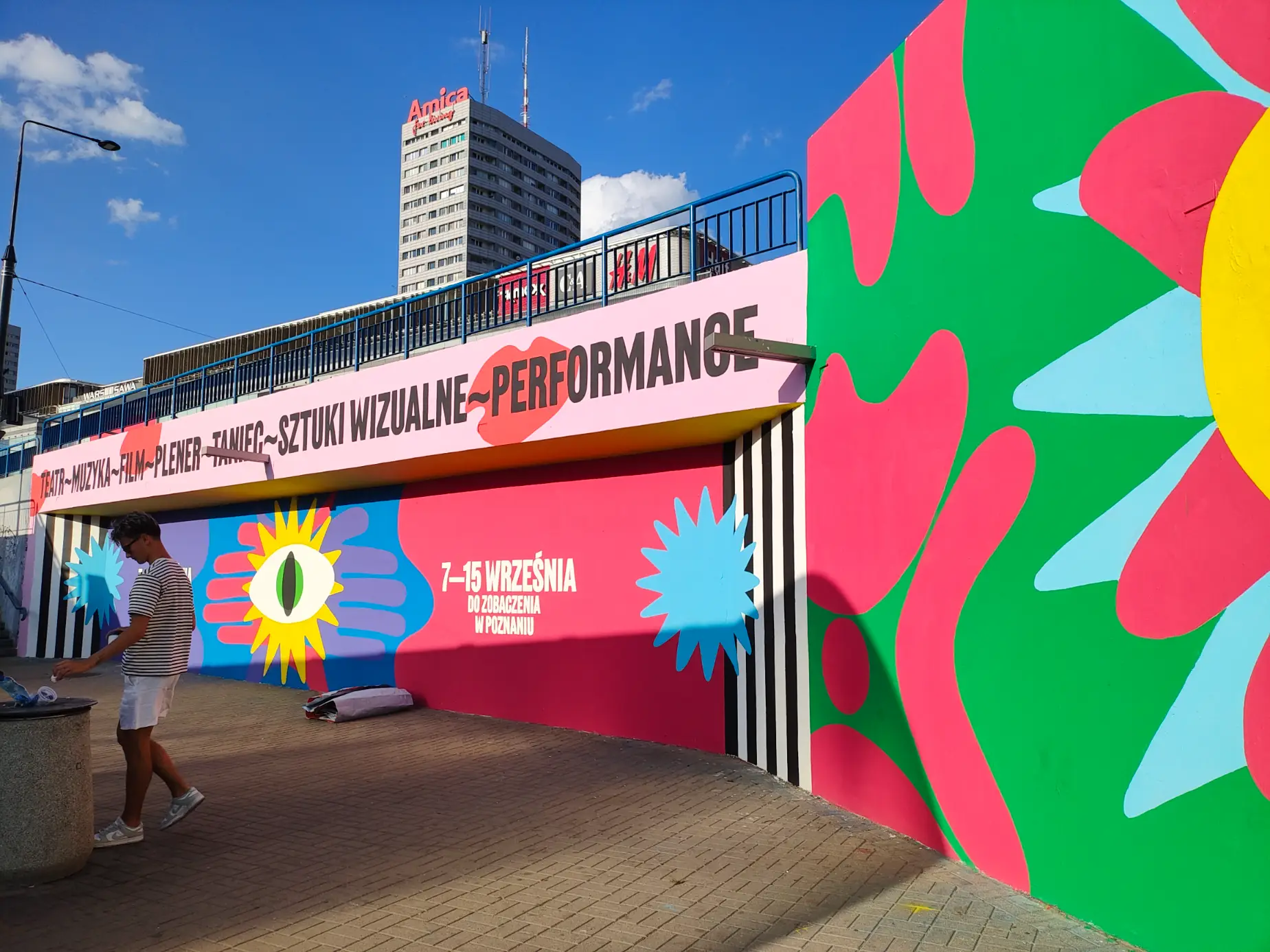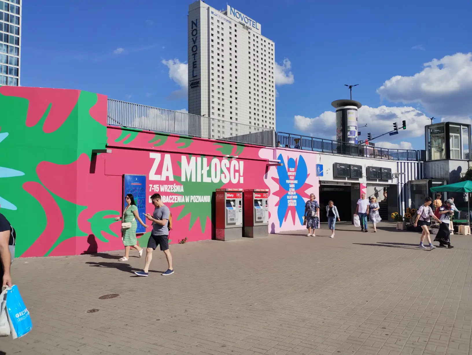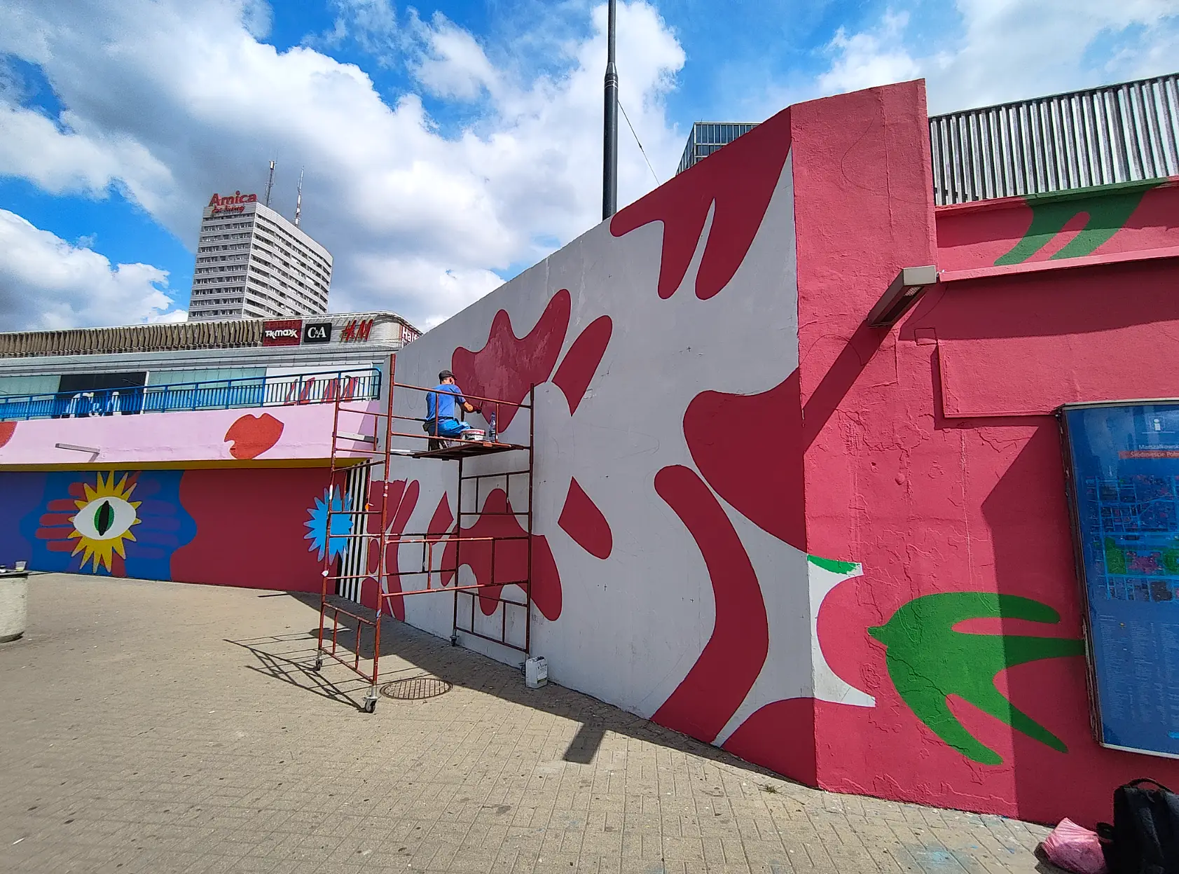 W przestrzeni miejskiej Warszawy pojawił się barwny mural promujący Festiwal Malta w Poznaniu. Dynamiczna kompozycja w intensywnych kolorach – różu, zieleni i błękitu – przyciąga uwagę przechodniów i wpisuje się w energiczny, artystyczny charakter wydarzenia. Hasło „ZA MIŁOŚĆ!” podkreśla ideę festiwalu, który łączy teatr, taniec, sztuki wizualne, film, koncerty i performance.